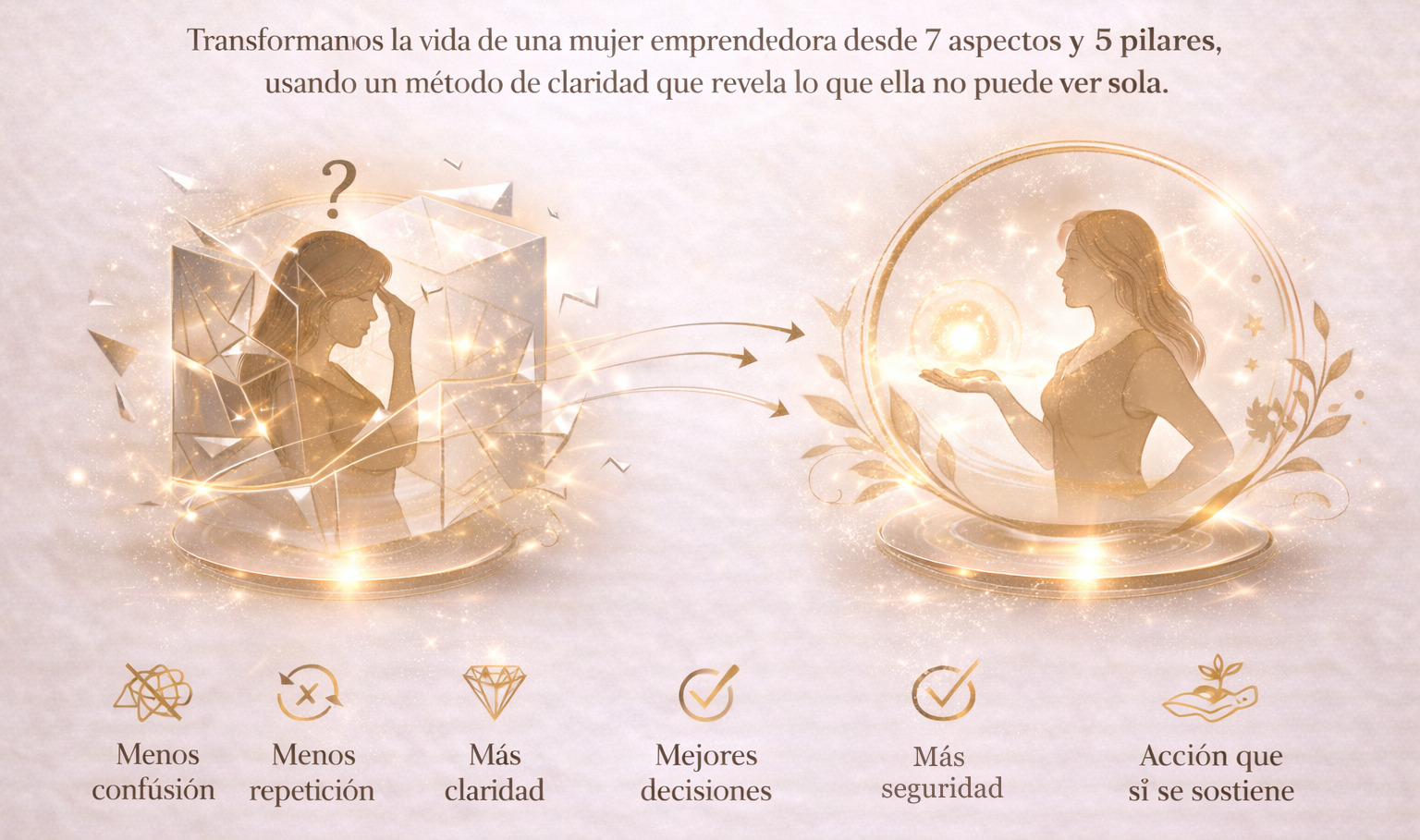 Impactar a mujeres y organizaciones que comprenden que el verdadero crecimiento no consiste en hacer más, sino en vivir y liderar desde una estructura interna más clara, demostrando que profundidad, orden y bienestar pueden coexistir con resultados reales y sostenibles.